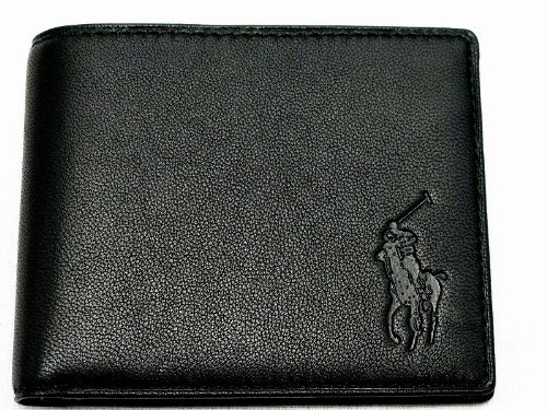 Discount Ralph Lauren Men Big Pony Logo Lambskin Billfold Wallet (One size, Black)